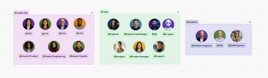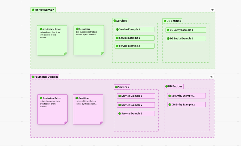 Draw your domains. Connect with codebase to track autonomy & ownership. Use boards in meetings.