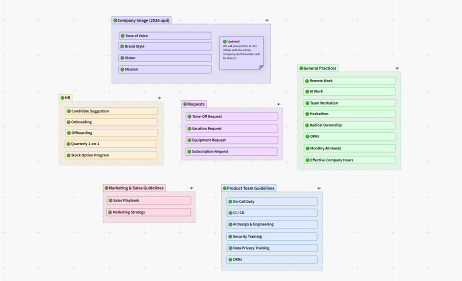 Visual and up-to-date collection of your company practces, guidelines and strategy